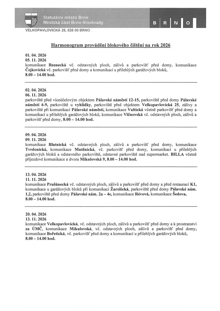 Blokové čištění na rok 2026