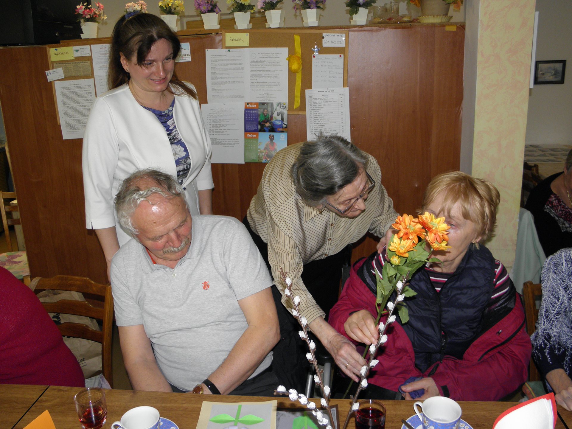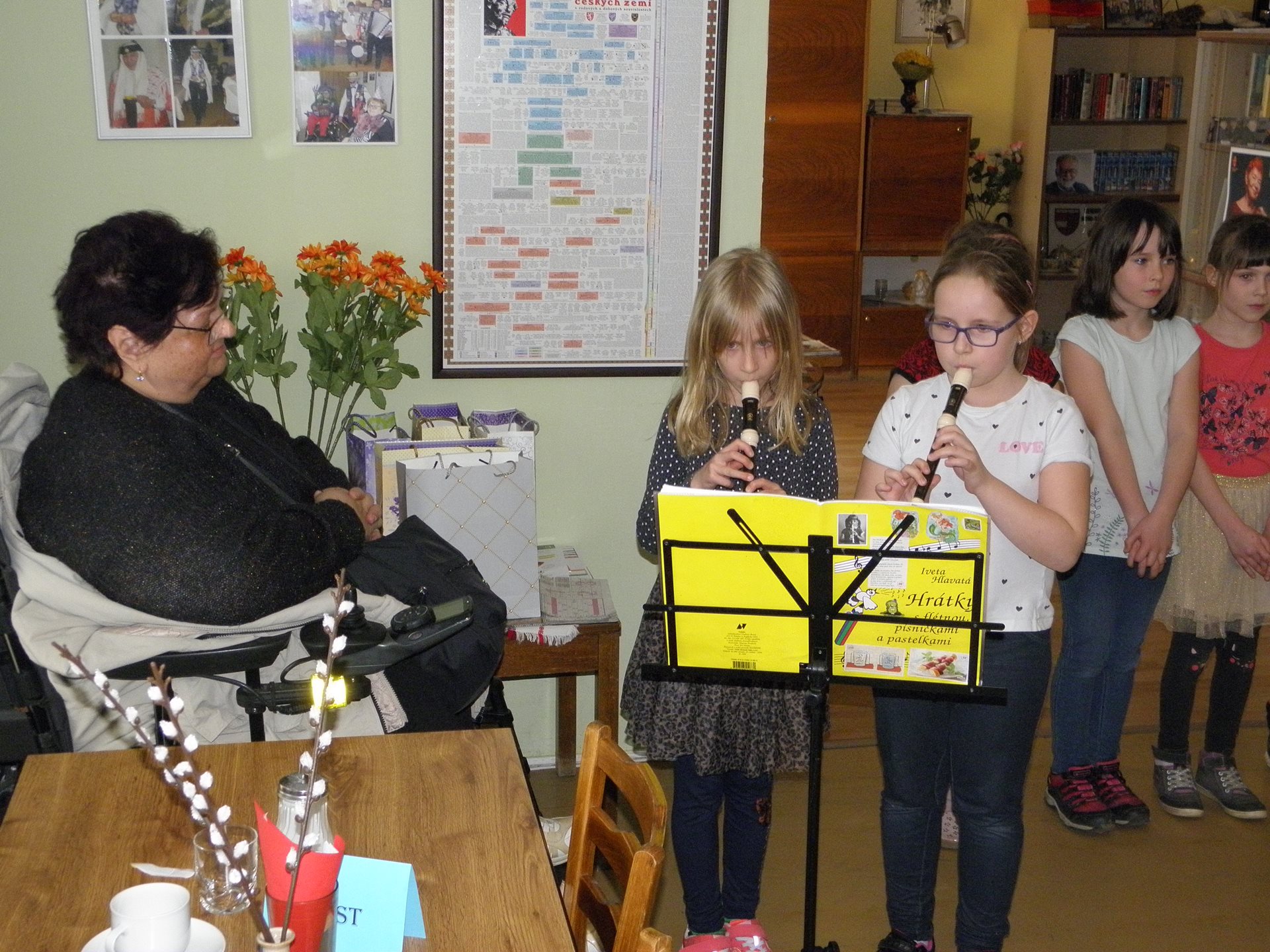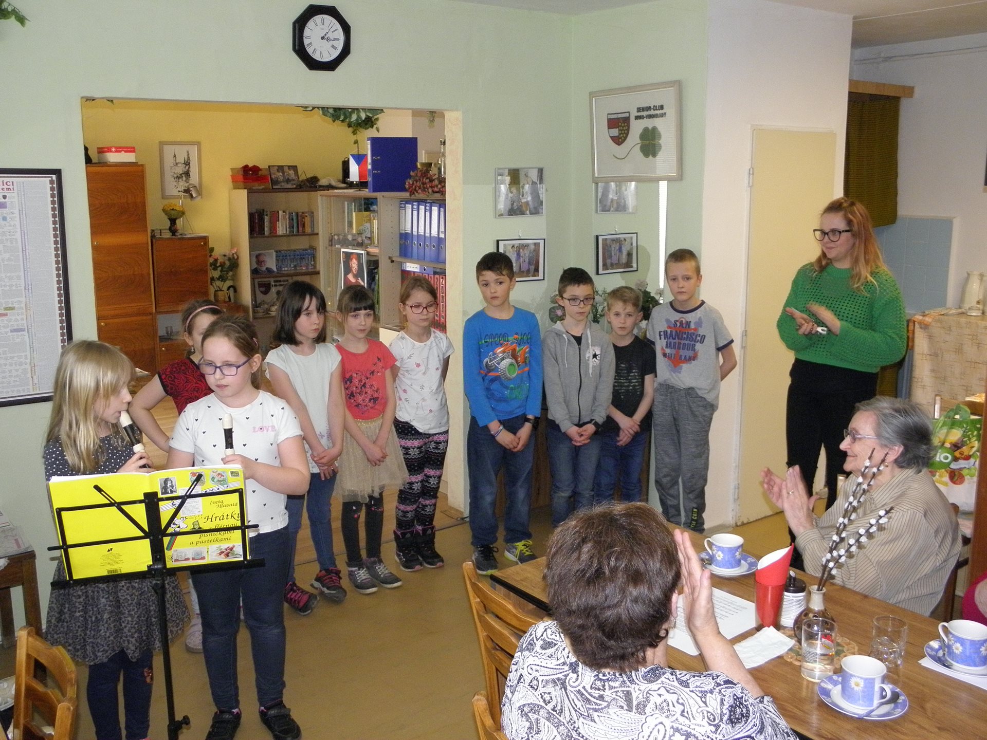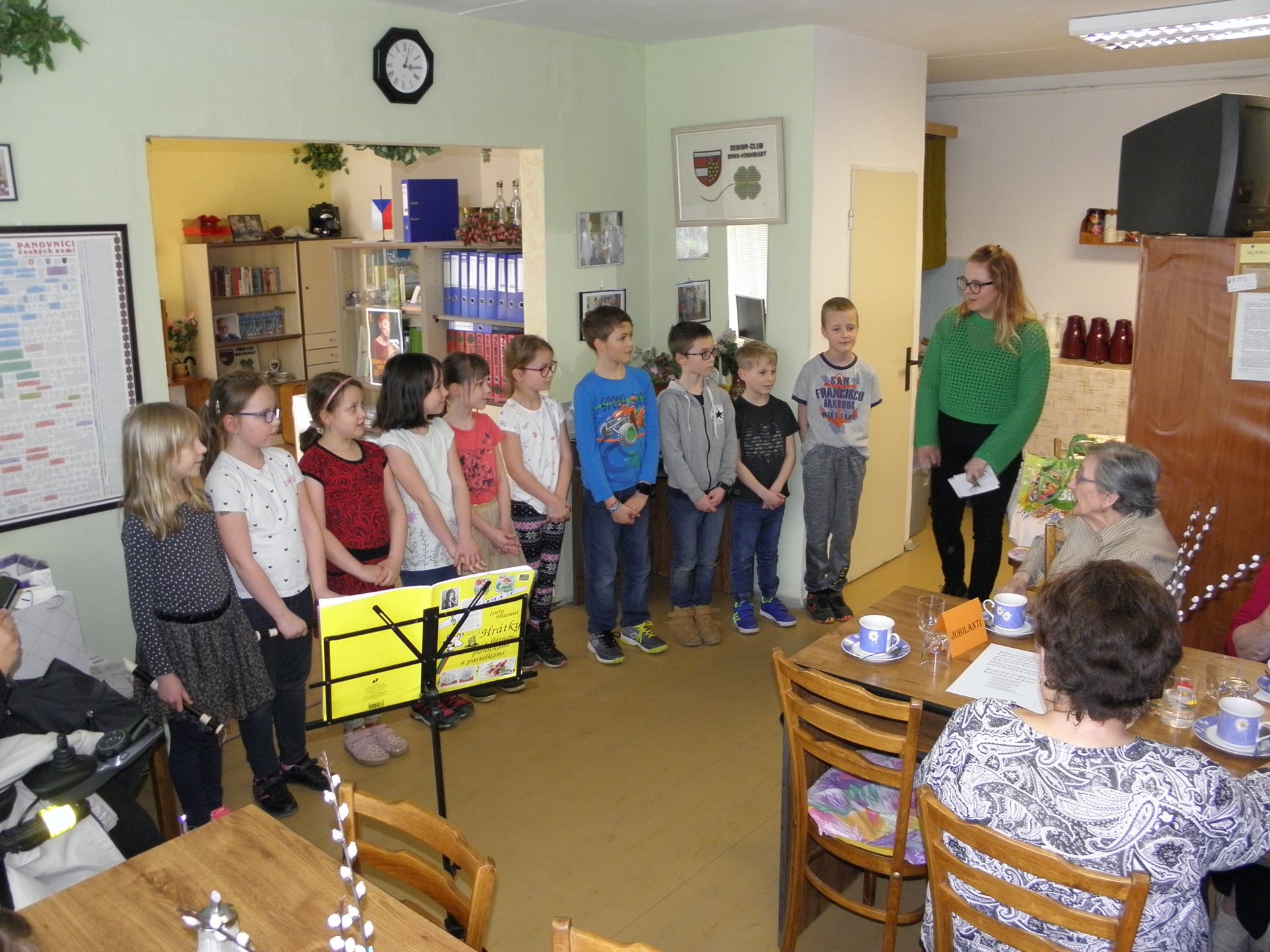 První překvapení si připravily děti s paní vychovatelkou - po svém vystoupení se totiž rozešly po klubovně a každému přítomnému předaly dárek - vlastnoručně vyrobenou papírovou kytičku ... To se nám v klubovně asi ještě nestalo a všechny obdarované to opravdu potěšilo a příjemně naladilo.