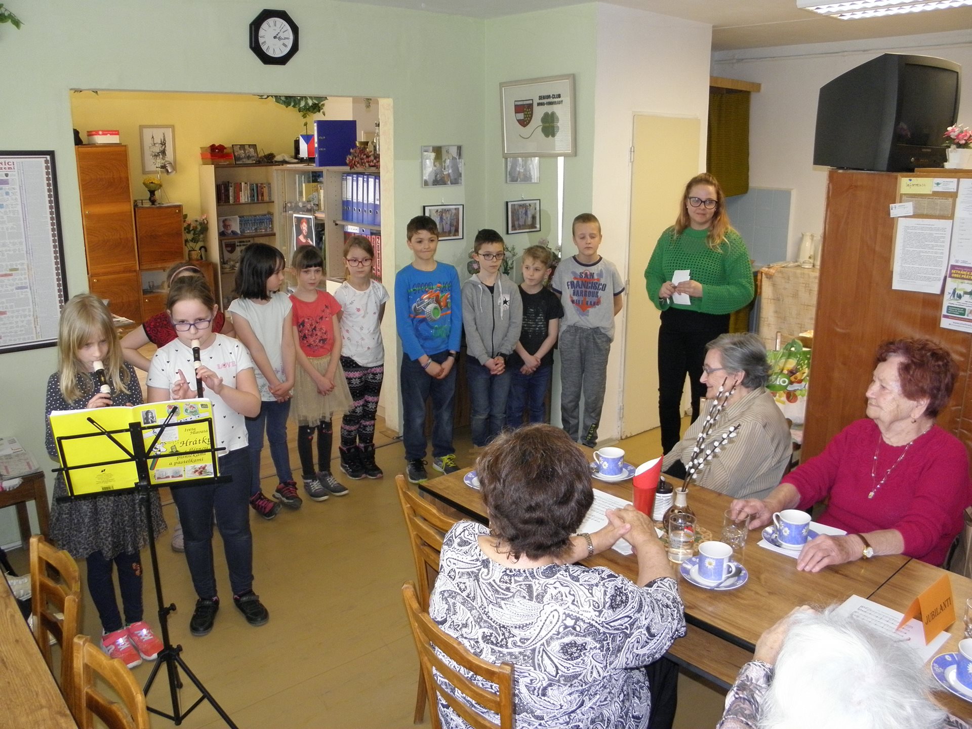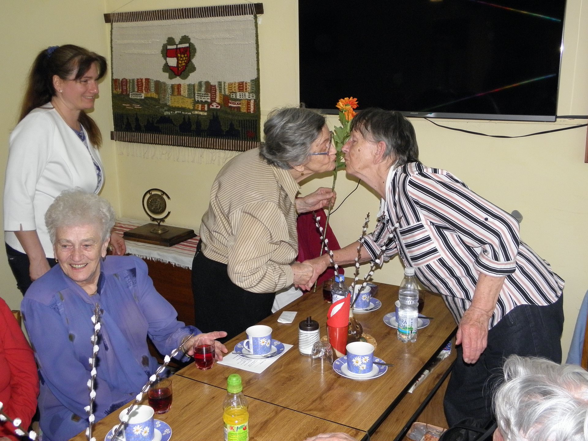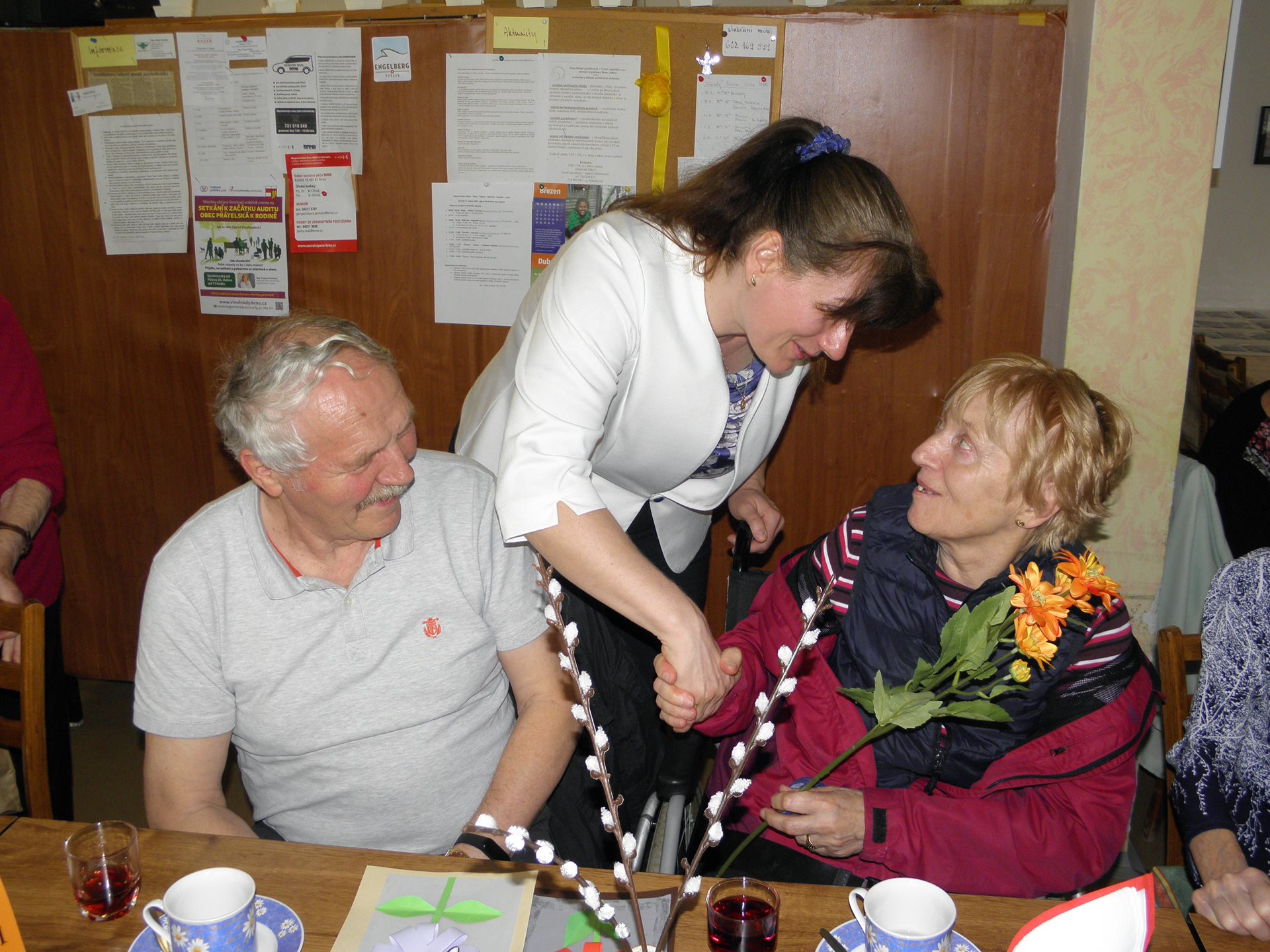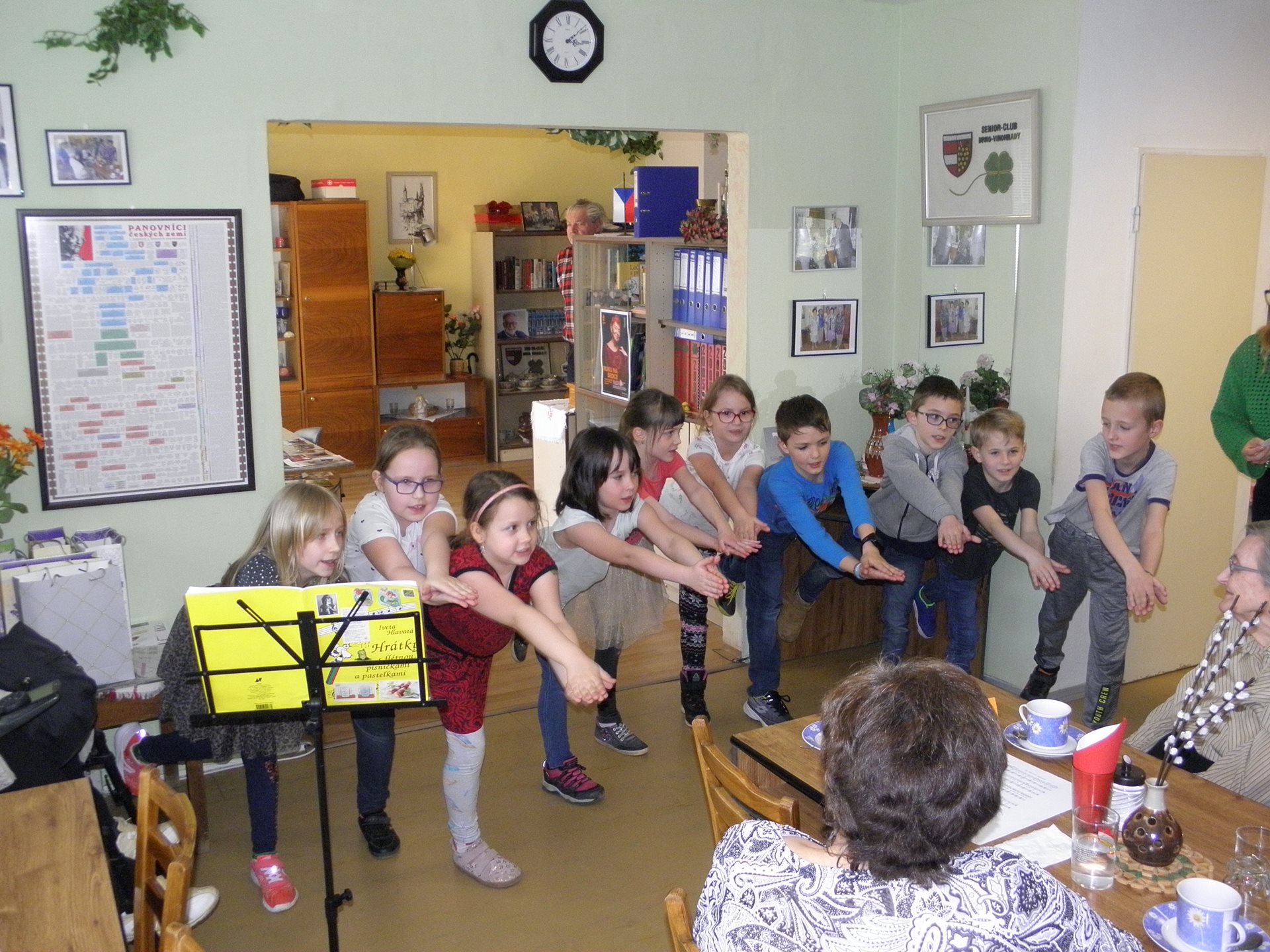 První překvapení si připravily děti s paní vychovatelkou - po svém vystoupení se totiž rozešly po klubovně a každému přítomnému předaly dárek - vlastnoručně vyrobenou papírovou kytičku ... To se nám v klubovně asi ještě nestalo a všechny obdarované to opravdu potěšilo a příjemně naladilo.