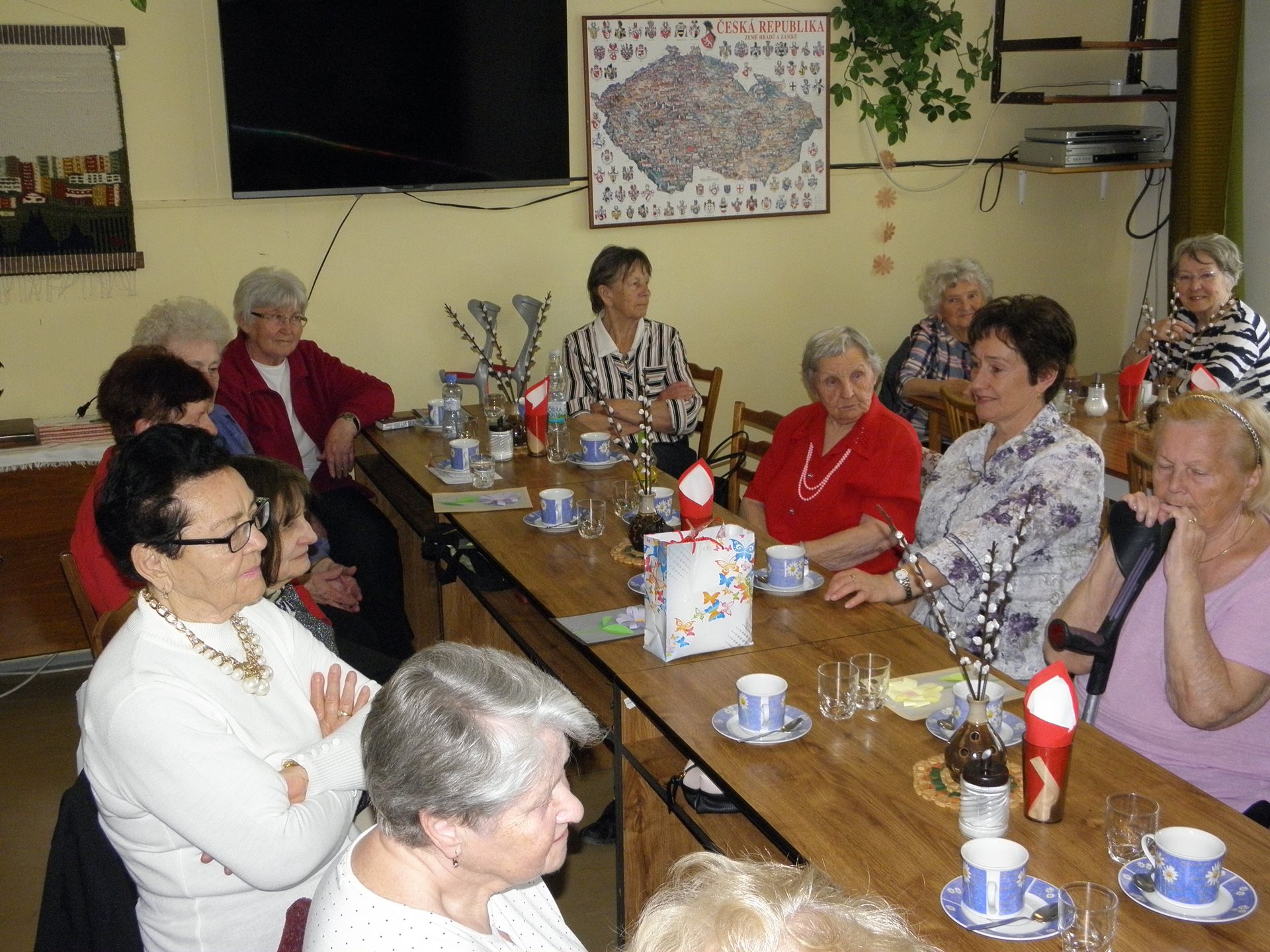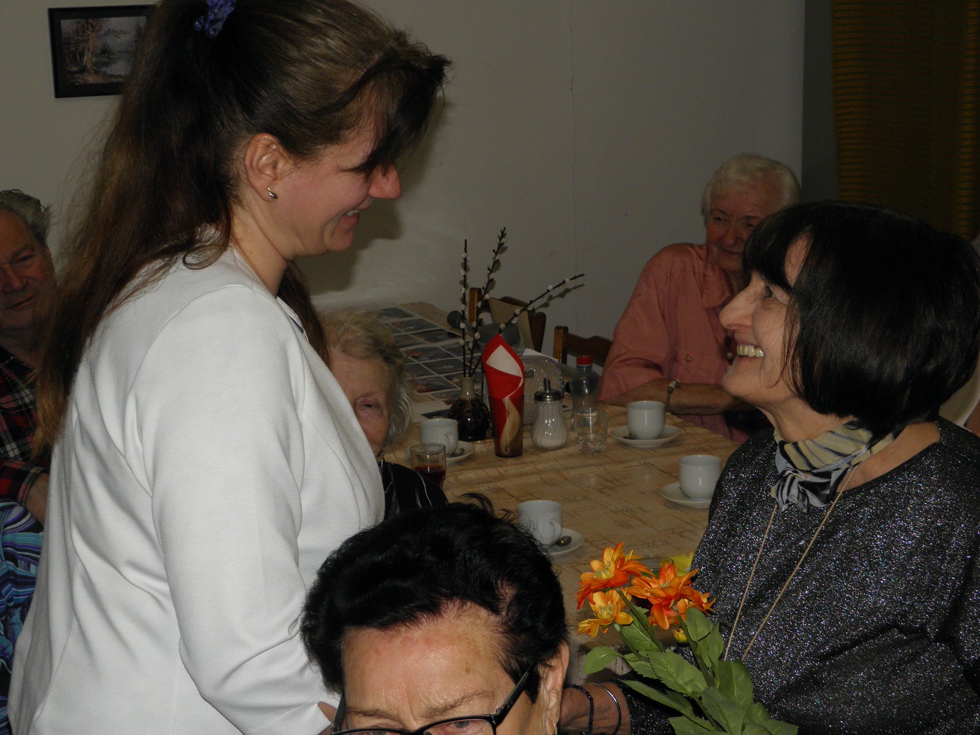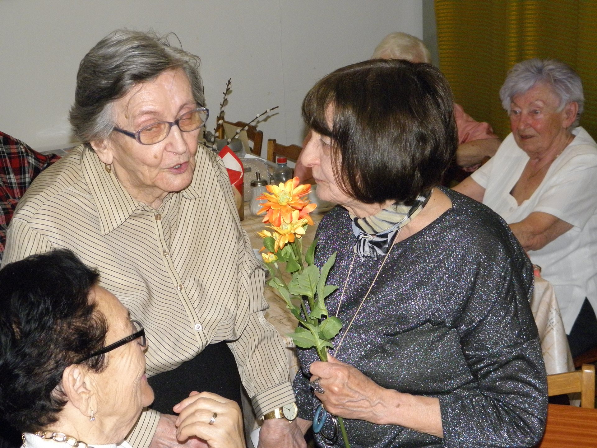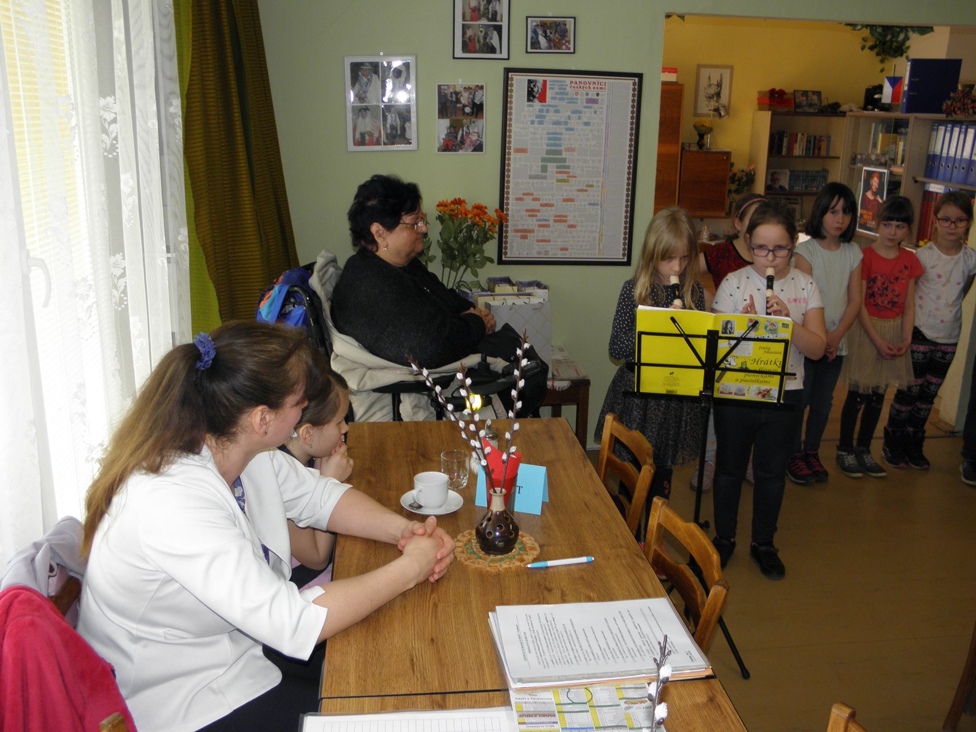 První překvapení si připravily děti s paní vychovatelkou - po svém vystoupení se totiž rozešly po klubovně a každému přítomnému předaly dárek - vlastnoručně vyrobenou papírovou kytičku ... To se nám v klubovně asi ještě nestalo a všechny obdarované to opravdu potěšilo a příjemně naladilo.