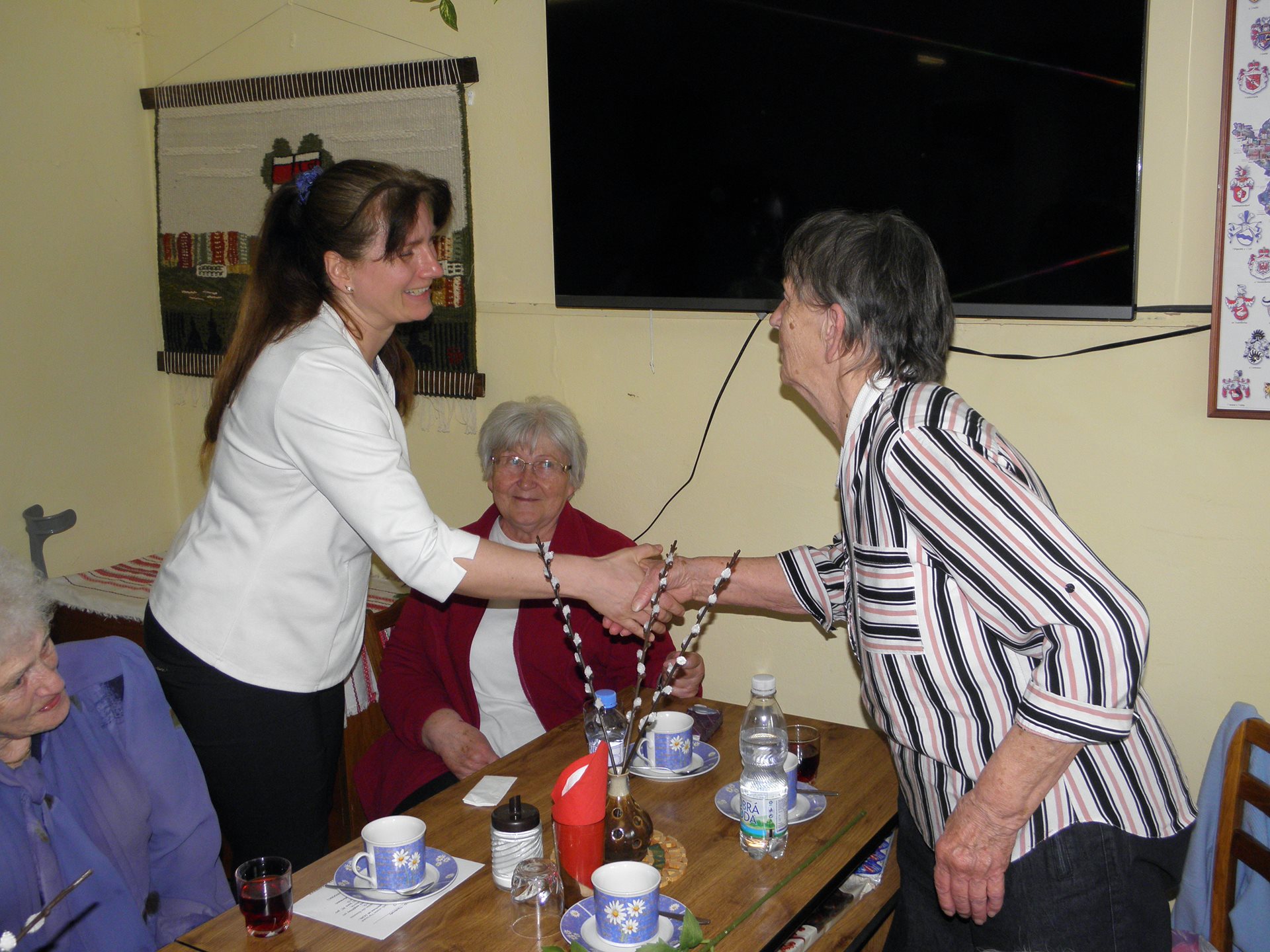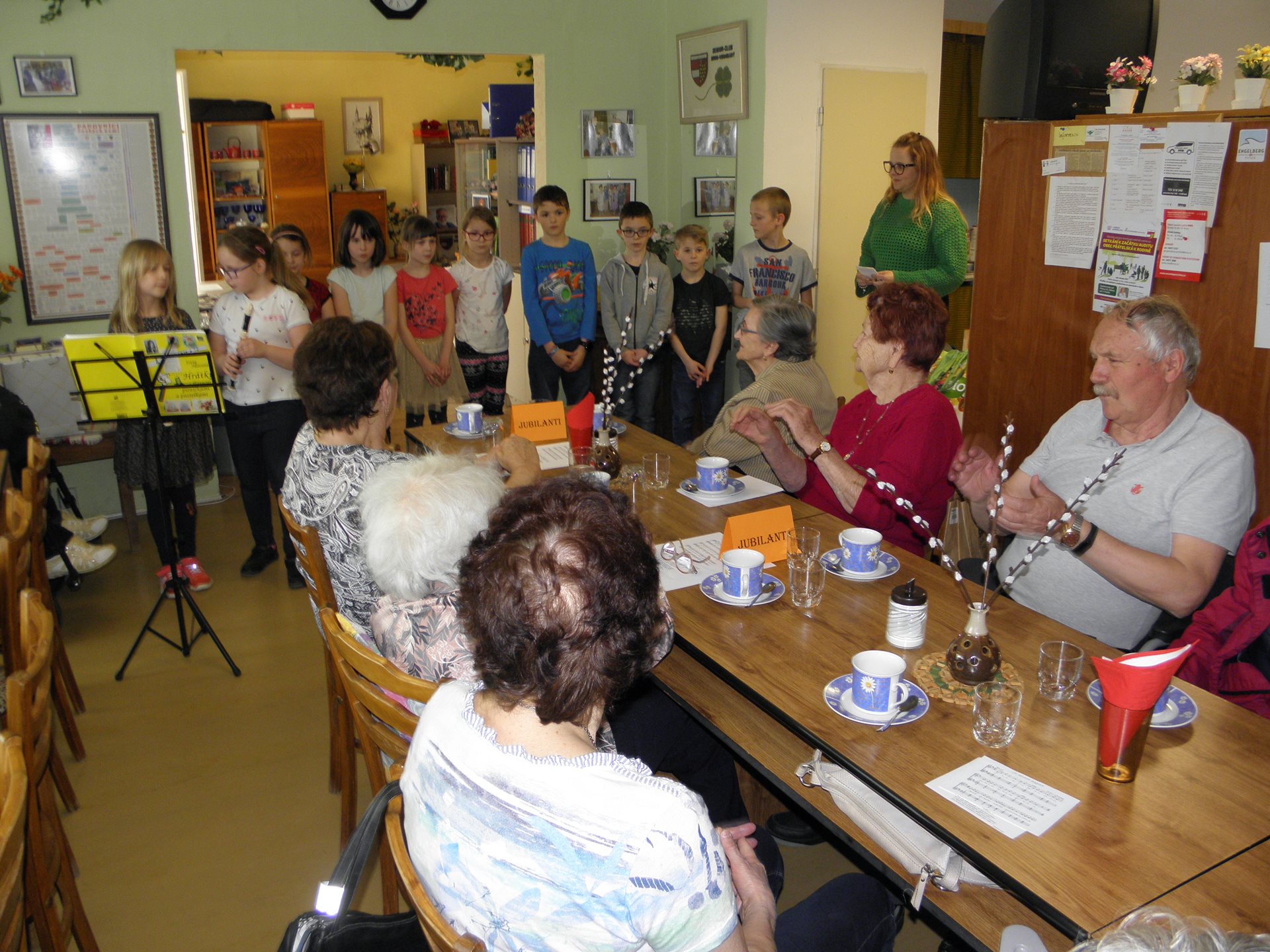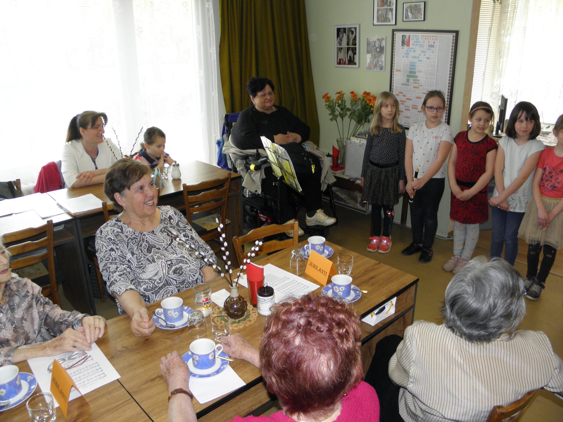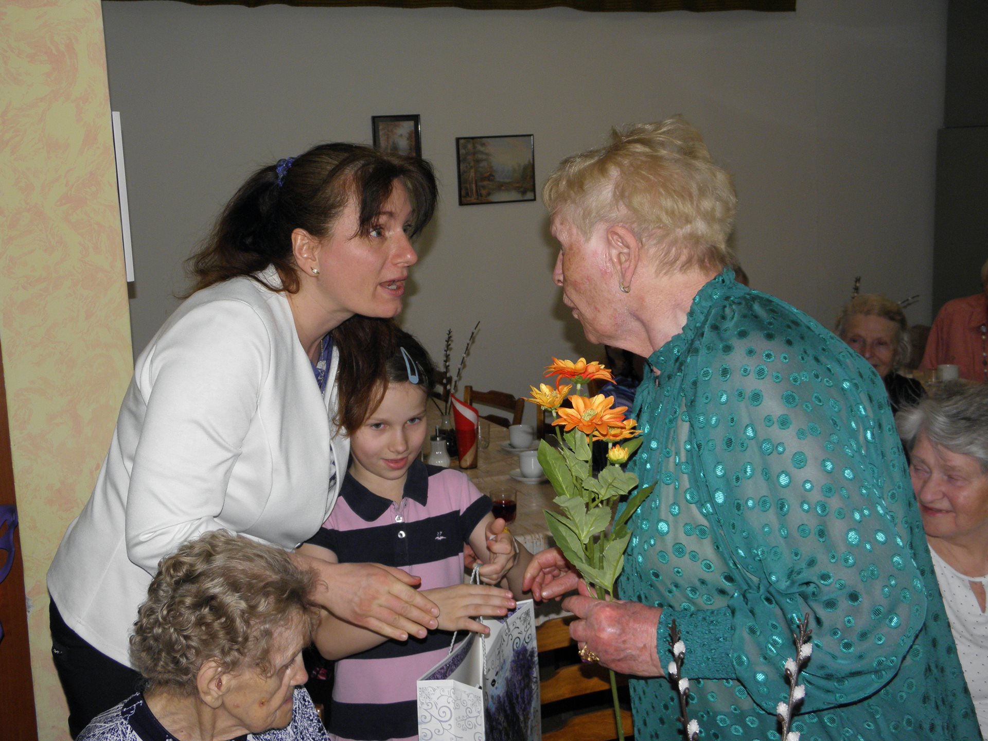 První překvapení si připravily děti s paní vychovatelkou - po svém vystoupení se totiž rozešly po klubovně a každému přítomnému předaly dárek - vlastnoručně vyrobenou papírovou kytičku ... To se nám v klubovně asi ještě nestalo a všechny obdarované to opravdu potěšilo a příjemně naladilo.