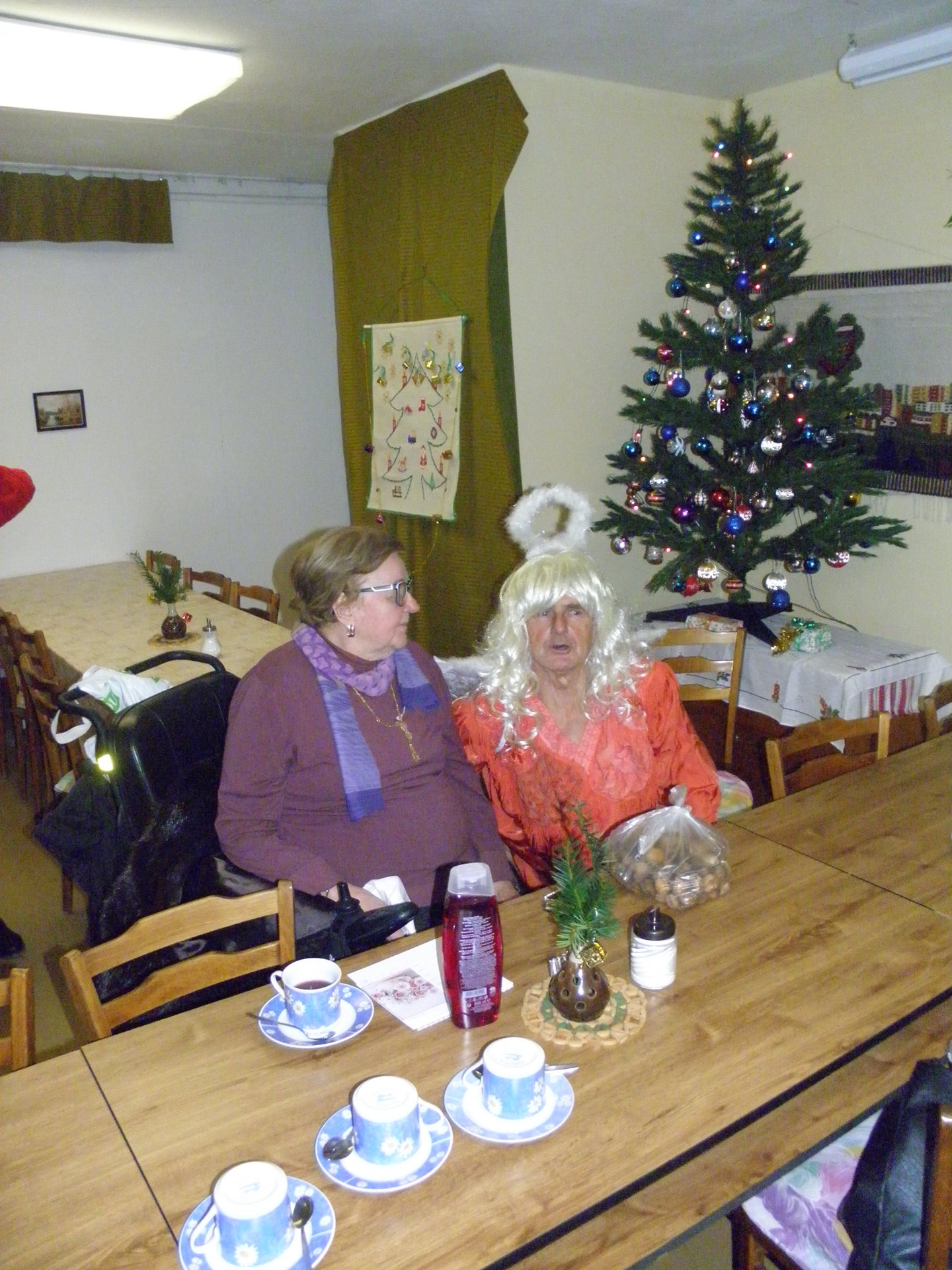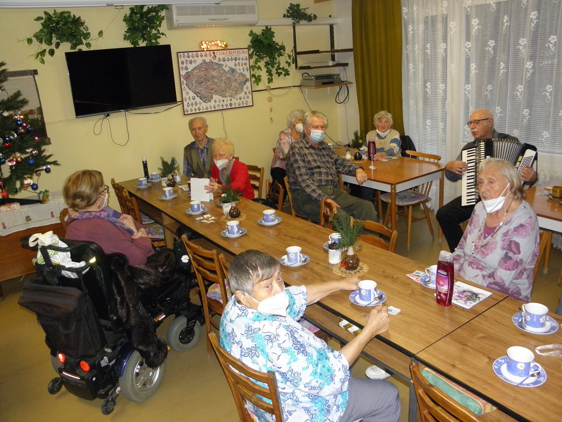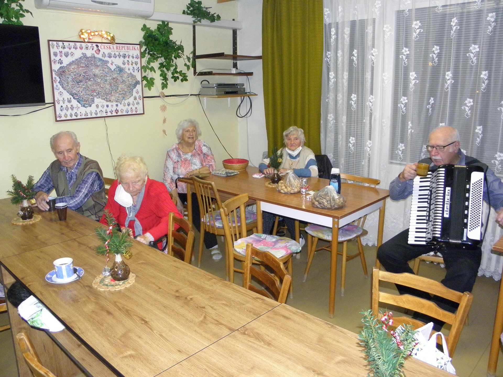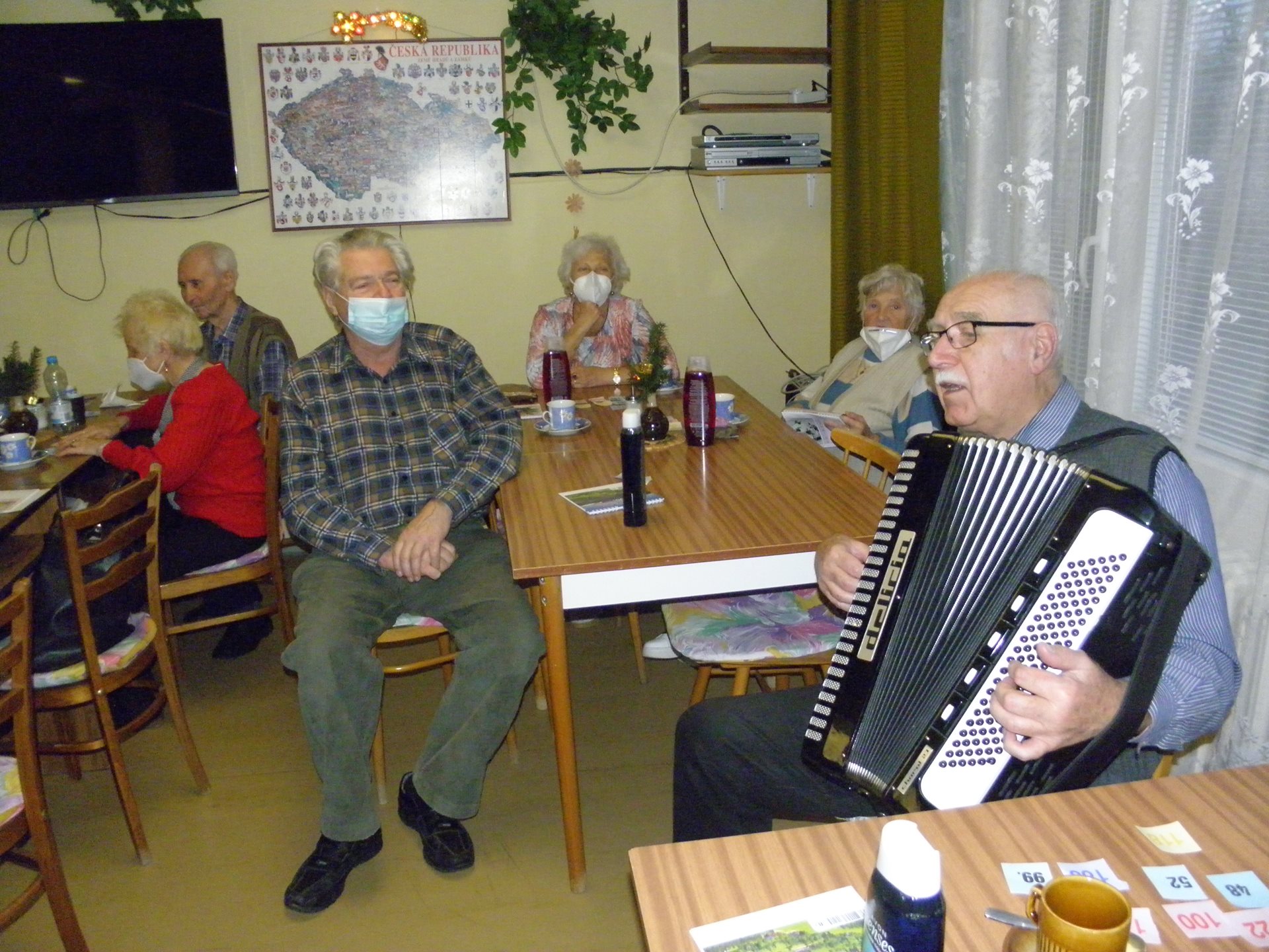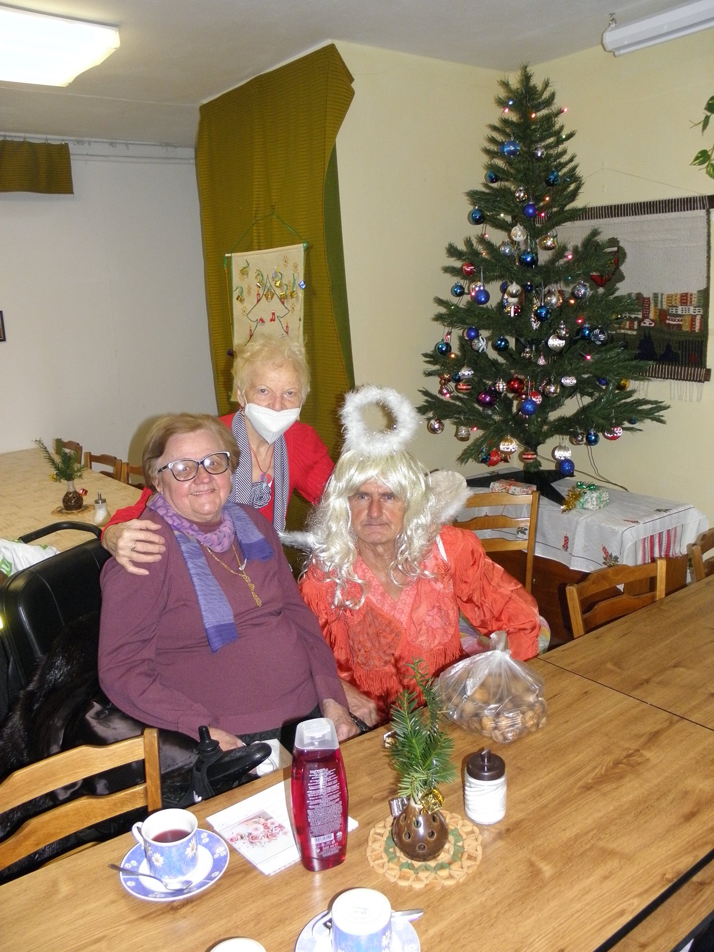 Po zhruba hodinovém obdarovávání přítomných (náročném zejména pro anděla, který s každým dárkem musel "poletovat" po klubovně až k jednotlivým výhercům) nastala konečně část oddychová - konzumace čaje s punčem a připraveného drobného zákusku a po tomto posílení těla se dostalo i na posílení dobré mysli a pohody písničkami na přání ze všech regionů nejen českého, ale i sousedního státu ... :-)