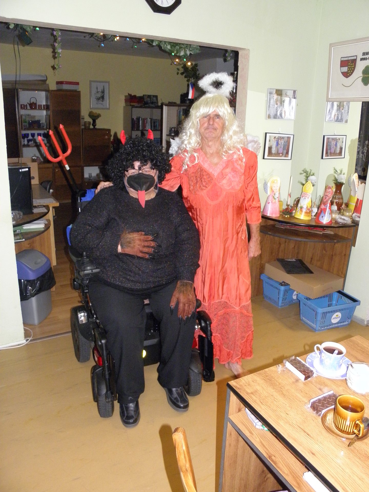 Po krátkém obvyklém rozcvičení těla i mysli (jako na každé klubové akci) museli sice hosté poté několik minut sečkat, než do klubovny přikvačili anděl s hrozivě vypadajícím čertem (Mikuláš se někde zapomněl cestou ...), ale pak už nabralo dění patřičný spád. Všichni hříšníci, zapsaní do černé knihy hříchů, se vykoupili (často i s podporou ostatních) ze svých drobných hříšků přednesem básně či zpěvem písně, za což byli postupně odměněni drobnými dárky.